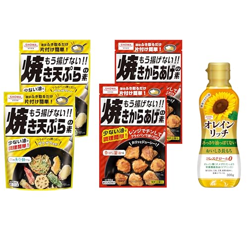 焼き天ぷらの素と焼きから揚げの素、オレインリッチの3点が含まれます。