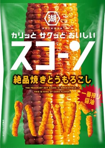 湖池屋のスコーンが「絶品焼きとうもろこし」味で登場。 口溶けの良い生地に進化し、カリッとサクッと軽快な食感がくせになります。 一番搾り醤油を使用した本格的な風味で、