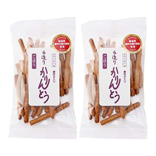 畦道グループ食品加工組合の手造りかりんとうです。 ごぼうの風味と唐辛子のピリッとした辛さが特徴です。 クセになる食感をお楽しみください。 原材料は小麦粉、砂糖、ごぼう、菜種油などを使用。 アレルギー物質として小麦、大豆、卵を含みます。 内容量は70gが2袋入りです。