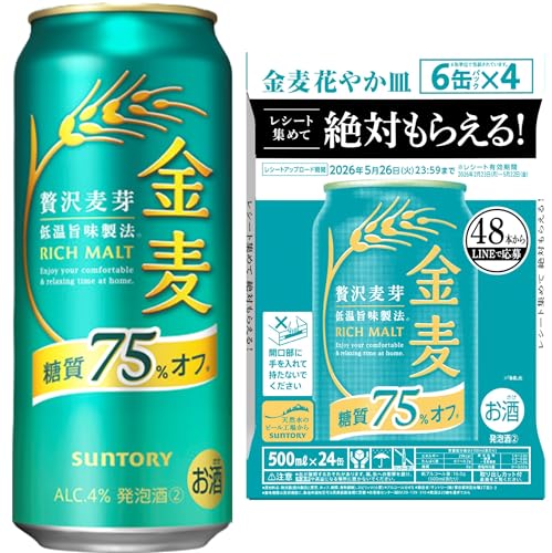 金麦 糖質75%オフ 500ml 24本 【絶対もらえる金麦花やか皿キャンペーン】 [6缶×4] [ サントリー ビール 新ジャンル 発泡酒 ]