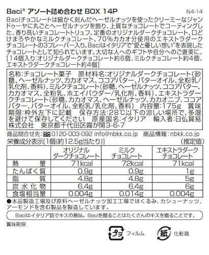BACI(バッチ) 3種類 アソート 詰め合わせ BOX 14粒 (個包装 イタリア産 ギフト)(オリジナルダーク ミルク エキストラダーク )