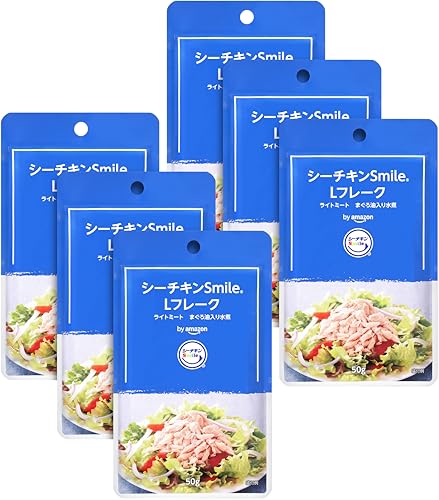 by AmazonのシーチキンSmile Lフレークは、タイ産のきはだまぐろを使用したパウチタイプのシーチキンです。大豆油と食塩でシンプルに味付けされており、6個入りで使い勝手が良いのが特徴です。サラダやサンドイッチの具材として、手軽にたんぱく質を補給できます。保存が効くパウチ包装で、ストックにも便利です。