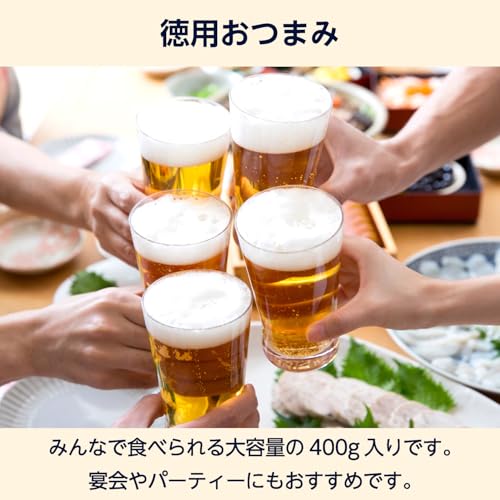 by Amazonの燻製さきいかは、大容量400gでたっぷりと楽しめるチャック付き袋入りです。