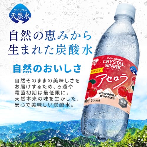 CRYSTAL SPARK(クリスタルスパーク) 炭酸水 500ml ×24本 アセロラ 無糖 強炭酸水 アイリスオーヤマ ペットボトル ケース 500ミリリットル ボトル 割り材