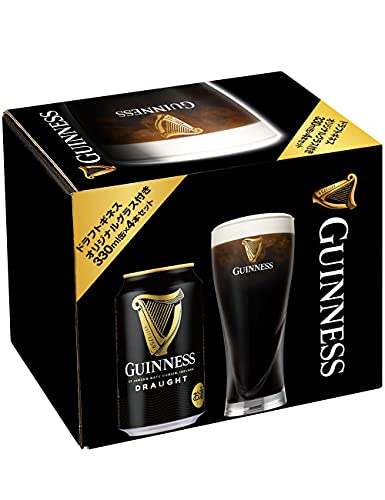 ドラフトギネス330ml缶4本に、本格的なスリムパイントグラスが付属。