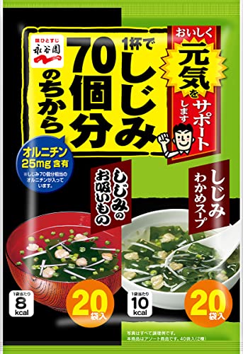 永谷園の「1杯でしじみ70個分のちから しじみわかめスープ&お吸いもの」は、オルニチンを配合した贅沢な味わいです。