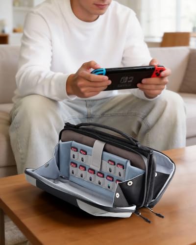 Inateck Magicシリーズ 360°保護 Switch 2 収納バッグ 、調節可能なアコーディオン拡張デザイン、23の整理されたコンパートメント、ドック/充電器/ゲームカード対応、防水・耐衝撃、取り外し可能なショルダーストラップ、ブラック
