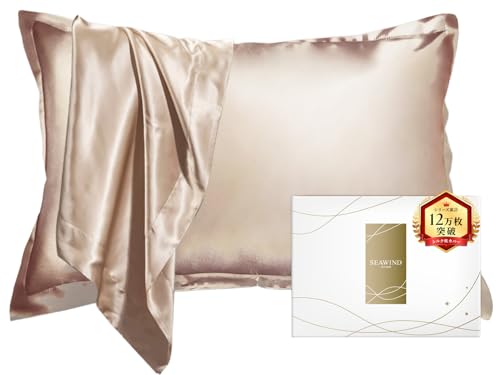 【ヘアケアのプロ監修】 SEAWIND シルク枕カバー【TVで紹介】まくらカバー 洗える 両面シルク90% 19匁 美肌 美髪 うるつや髪 洗濯可 髪に優しい (シャンパンゴールド,43×63cm)