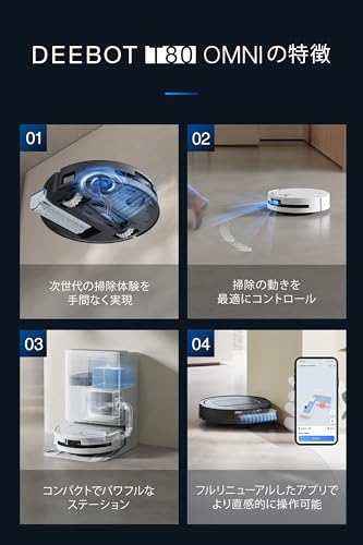 【ローラー式強力モップ】ECOVACS (エコバックス) DEEBOT T80 OMNI 吸引力18000Pa ロボット掃除機 水拭き両用 自動ゴミ収集 エッジ清掃 ローラーモップ AI認識 毛絡み除去システム3.0 全自動 モップ乾燥 自動給水 モップ温水洗浄 マッピング AI障害物回避 ゼロタングル アプリ操作 落下防止システム Alexa対応 清掃予約 お掃除ロボット