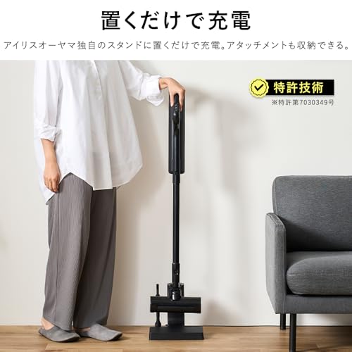 【壁際のゴミも取り逃さない】アイリスオーヤマ コードレス掃除機 紙パック式 軽量1.3kg 置くだけで充電 きわまでヘッド ゴミ捨て簡単 SBD-7AZ1P-B【Amazon.co.jp限定】