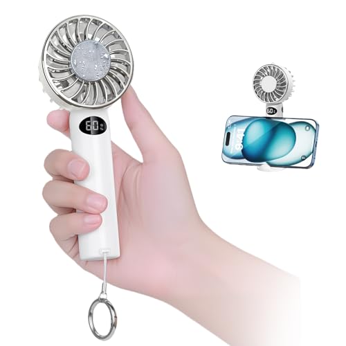 【業界NO.1最軽量 2重反転ファン ハンディファン 】130gミニサイズ 12枚羽根 1秒冷感 4in1首掛け/卓上/手持ち/スマホ置く可能 カラビナとストラップ付き 最長10h稼働 携帯扇風機 小型 熱中症/暑さ対策/花火大会/スポーツ観戦 携帯便利 父の日ギフト 誕生日プレゼント (ジェイドホワイト)