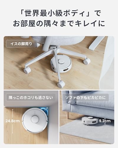 【2025進化】SwitchBot ロボット掃除機 K11+は、世界最小級の直径24.8cmボディ。