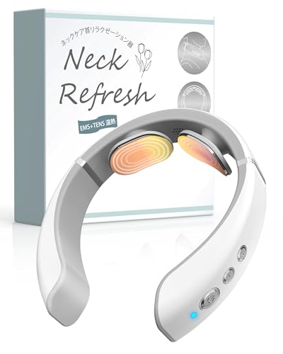 【2026冬最新】Juliyas ネックケア 首 リラクゼーション器 EMS×TENS W効果 振動 首元ケア ホットケア 10種類のモード 19段階強度調節 静音・音声ガイド切替 メモリー機能 温熱 ホットケア 軽量108g コンパクト ネックリフレッシュ 母の日 父の日 誕生日 プレゼント 日本語音声 (ホワイト)