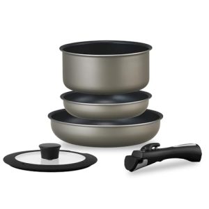 フライパン2サイズと鍋、ガラス蓋が揃う1人暮らしに最適なセットです。