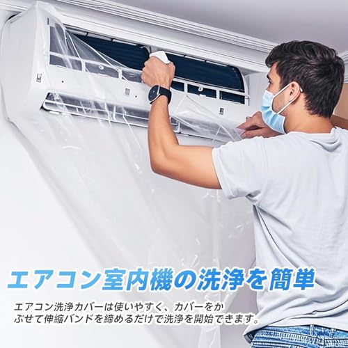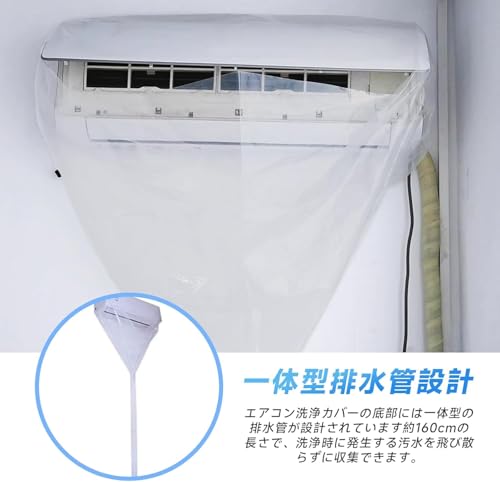エアコン洗浄 エアコン掃除 カバー エアコン洗浄カバー 2個入り 壁掛用 外周140-250cm サイズ調整 透明 排水チューブ1.6m 汚水飛散防止 取付簡単 家庭用 業務用 室内用 (2)
