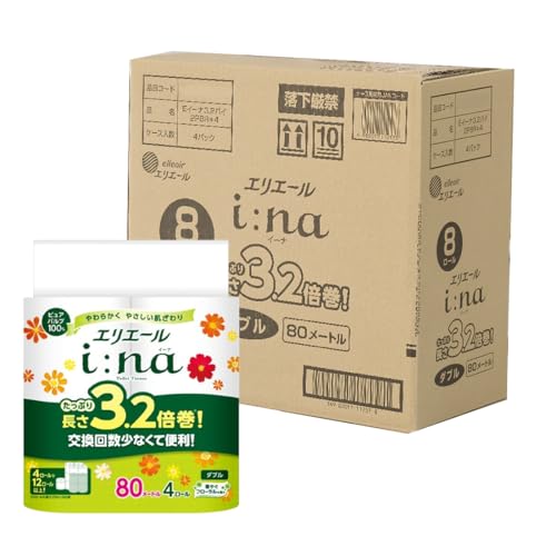 エリエール トイレットペーパー i:na(イーナ) 3.2倍巻き 80m×32ロール(8ロール×4パック) ダブル パルプ100% 華やぐフローラルの香り 【EC限定 正規段ケース】 【ハーフケース】