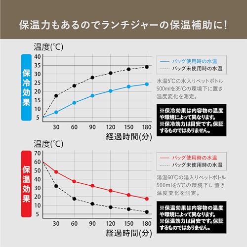内面はシルバーコーティングで保冷効果があり、底マチが広いためお弁当箱やドリンクもしっかり収まります。