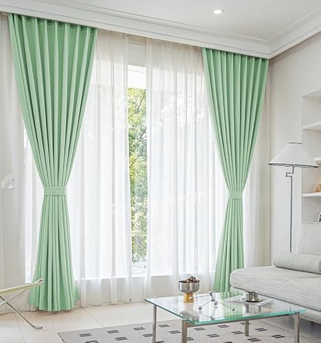 シーフィールド 1級遮光 カーテン+ミラーレース 4枚セット 幅100×丈110cm グリーン 遮熱 断熱 防音 UVカット 形状記憶 洗濯機OK 選べる19色 120サイズ F-1