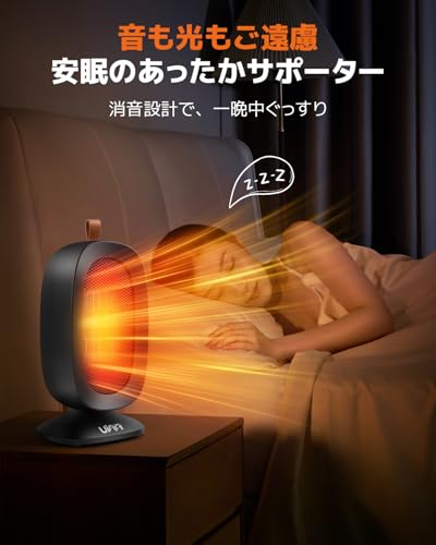 足元を効率的に温める小型のセラミックヒーターです。 転倒時や過熱時に自動で電源がオフになる安全機能を搭載。