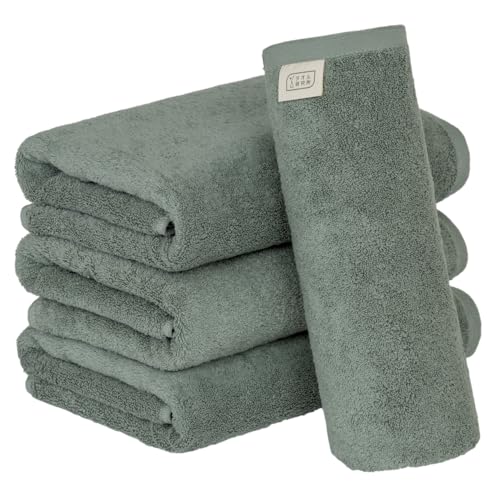 タオル研究所 [ボリュームリッチ] #003 バスタオル ダスティーグリーン 4枚セット ホテル仕様 厚手 ふかふか ボリューム 高速吸水 耐久性 綿100% 480GSM JapanTechnology
