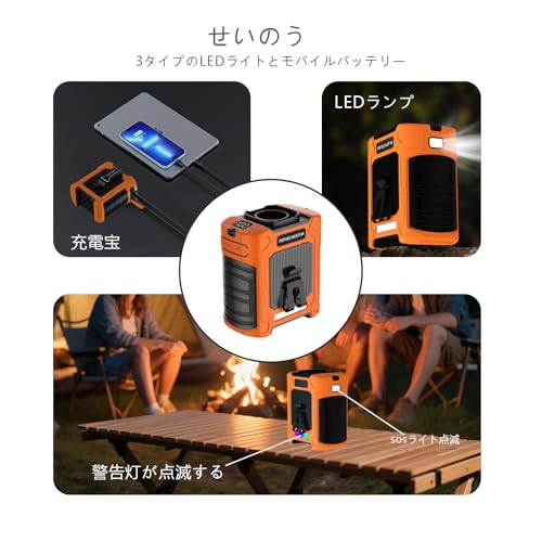 LED懐中電灯とSOSライト機能も備え、安全性を高めています。