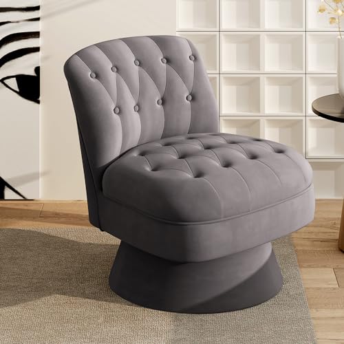 モダンデコ 椅子 ソファー 1人掛け リラックス チェア 回転座椅子 タフトボタン加工の張り地仕様 バレルアクセントチェア サイドコーナー 狭小空間用 360度 リビング ベッドルーム office chair ドレッサー(はいいろ)
