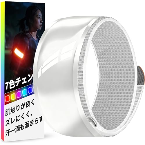 ランニング ライト LEDアームバンド【7カラーチェンジ 通気性よい ムレない】 Type-C充電式 LEDアームバンド 推し活 ライブ グッズ 防水 夜間 散歩 ジョギング ウォーキング ライト 反射バンド 反射板 光る腕輪 夜間の事故防止(シルバー)