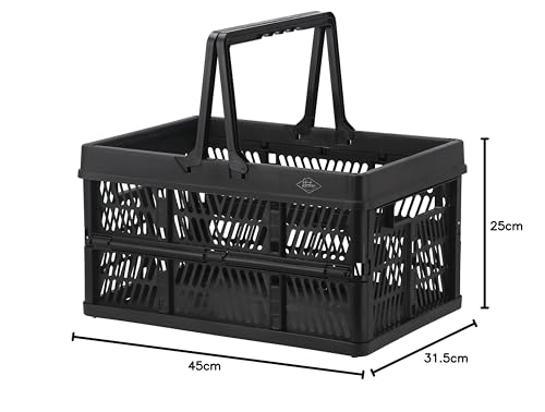 不二貿易(Fujiboeki) 折りたたみ コンテナ かご 幅45×奥行31.5×高さ25㎝ ブラック 取っ手付き 持ち運び簡単 内容量26L Lサイズ 86450