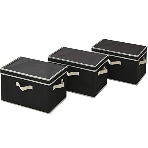 山善のどこでも収納ボックスは、ふた付きで中身が隠せる便利な3個組です。