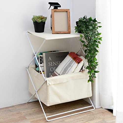 山善(YAMAZEN) ラック 収納ボックス 折りたたみ 2段 幅39.5×奥行34.5×高さ59cm ファブリック生地 かんたん組立 おしゃれ 棚 アイボリー KFBR-2(IV) 一人暮らし