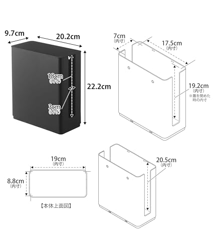 山崎実業(Yamazaki) 重ねられる スリム 蓋付き ルーター収納 ケース ブラック 約W9.7XD20.2XH22.2cm スマート テレビ裏収納 スタッキング可 4914