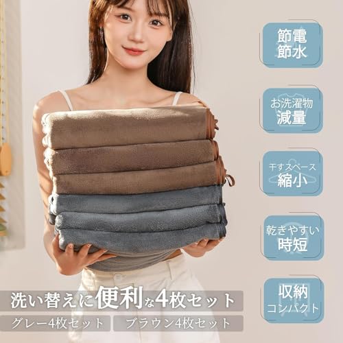 AISFA フェイスタオル マイクロファイバー 大判 ホテル仕様 フェイスタオルセット ホテルタイル タオル ループ付き 浴用 プール用 家庭用 業務用 吸水 速乾 抗菌 防臭 ふわふわ 柔らかい (カーキ, 4枚組/フェイスタオル)