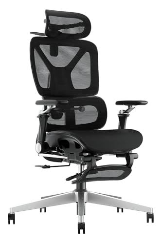 Comfora 人体工学チェア オフィスチェア フットレスト付 3Dヘッドレスト 6Dアームレスト 背面高さ調節 座面スライド 自動ランバーサポート リクライニング135° 静音キャスター 耐荷重150kg ブラック