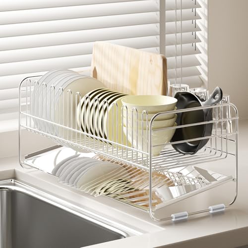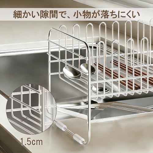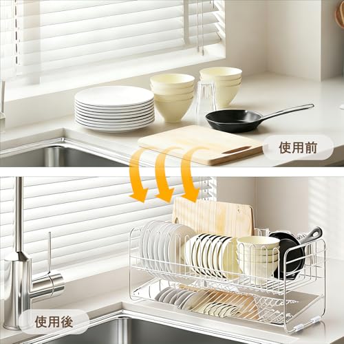 Forinluvの水切りラックは、湿気の多い日本のキッチンでも錆びにくい高品質ステンレス製。省スペースなスリム設計ながら、2段構造で大容量を実現します。