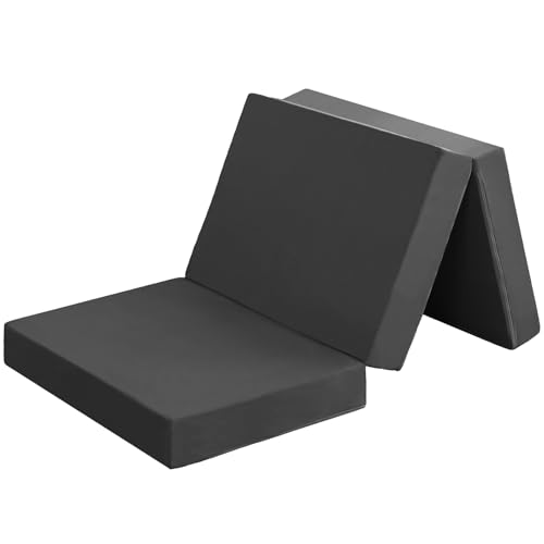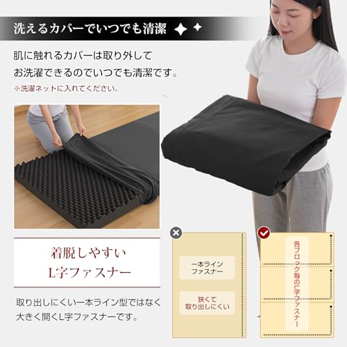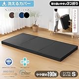 fuwawa シングル 三つ折り マットレス 【硬め190N 厚さ10cm】 高密度 高反発マットレス 折りたたみ 敷布団 凸凹加工 消臭炭加工 オールシーズン 防臭 体圧分散 洗えるカバー 圧縮梱包 97×195 ブラック 97195BK-C