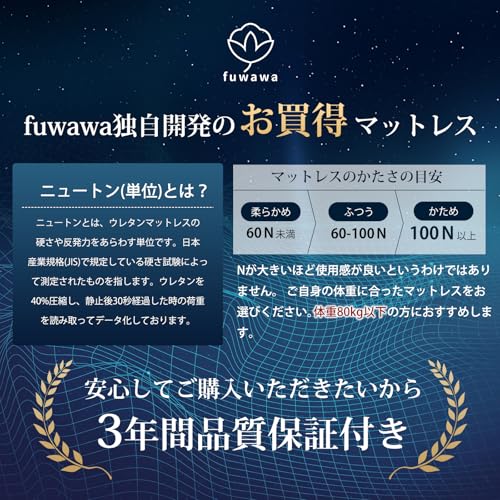 高反発マットレス「fuwawa」は、厚さ10cmの高密度ウレタンがしっかりと体を支えます。