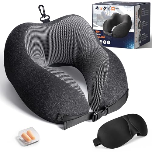 Greneo ネックピロー【業界独創の収納フック】首枕 飛行機 快適グッズ 低反発フォーム 人間工学が360°包み込む[夏も冬もOK!肌が呼吸するひんやり素材]トラベルピロー コンパクト 超軽量 折り畳み可能 リーディングピロー 脱着式・洗濯機対応 携帯枕 クッション 父の日 母の日 誕生日プレゼント 旅行 便利グッズ 機内/新幹線/夜行バス/車中泊/在宅ワーク適用(ブラックグレー)