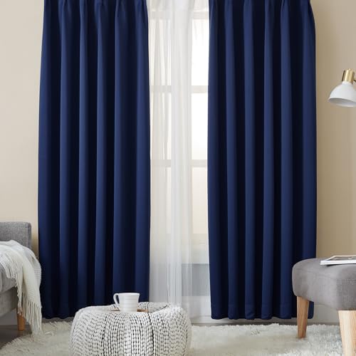 Hansleep カーテン 遮光カーテン 4枚セット 1級遮光 ネイビー 幅100cm丈170cm 断熱 防寒 防音 省エネ 無地 洗える 寝室 リビング用 (ドレープカーテン2枚・レースカーテン2枚)