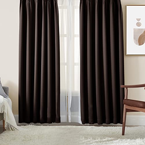 Hansleep カーテン 遮光カーテン 4枚セット 1級遮光 ブラウン 幅100cm丈190cm 断熱 防寒 防音 省エネ 無地 洗える 寝室 リビング用 (ドレープカーテン2枚・レースカーテン2枚)