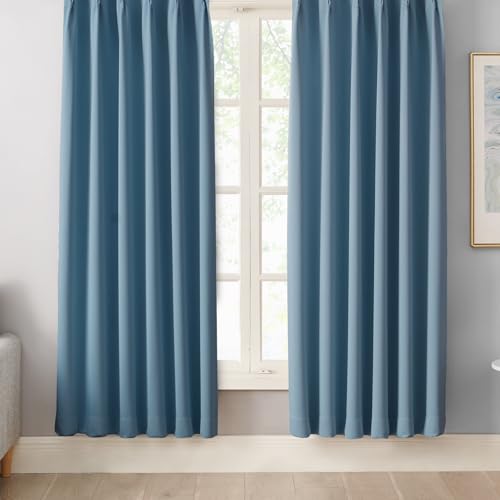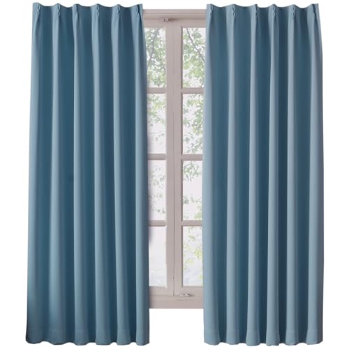 Hansleep カーテン 1級遮光 2枚組 幅100cm丈120cm ストーンシアン 断熱 防寒 防音 省エネ 厚手 無地 おしゃれ 洗える リビング用 (ストーンシアン, 幅100cm×丈120cm)