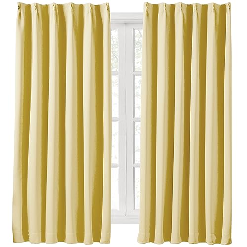 Hansleep カーテン 1級遮光 2枚組 幅100cm丈210cm イェロー 断熱 防寒 防音 省エネ 厚手 無地 おしゃれ 洗える リビング用 (イェロー, 幅100cm×丈210cm)