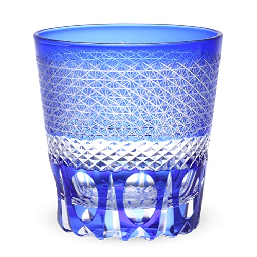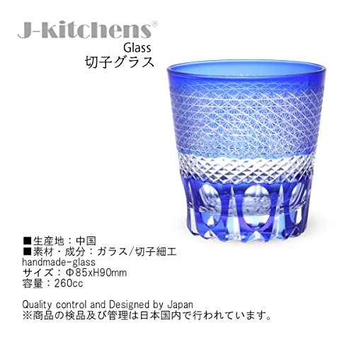 J-kitchens レトロ 切子 グラス カップ Φ85xH90mm 260cc 刺し子 ブルー 底彫あり 華匠 Current Model