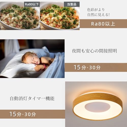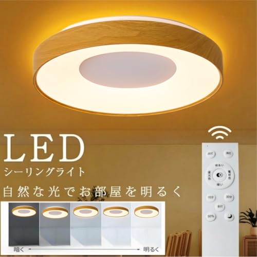 Jiaqihong5 LEDシーリングライト おしゃれ 日式和風 6畳~10畳 30W 3600lm 木目調 北欧 40CM 天井照明 上下発光 調色調光タイプ 背面発光 リモコン操作 メモリ機能 15分-30分スリープタイマー 常夜灯モード 和室 寝室 子供部屋 リビングルーム 取付簡単 工事不要 節電対策 長寿命