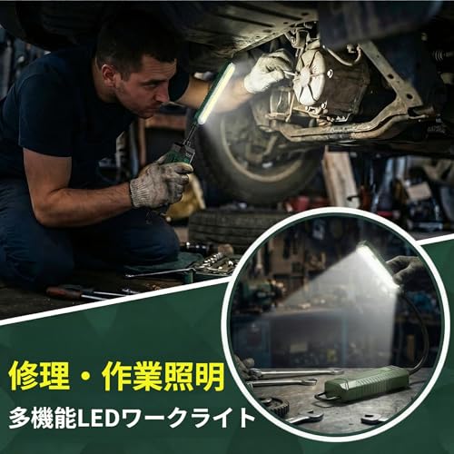 LETOUR LED作業灯 360°調節 充電式 led ワークライト マグネット付き 作業ライト 残量表示 三色温度+SOS 作業灯 小型 修理 工事 自動車整備 夜間作業 停電 緊急用照明(グリーン)