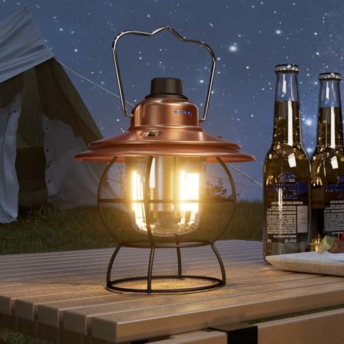 LUTW ランタン LED USB充電式 レトロ 3色切替・無段階調光 キャンプランタン 電池残量インジケータ付き アウトドア用品 キャンプ 雰囲気作り 登山 夜釣り 停電 防災 緊急 ブロンズ