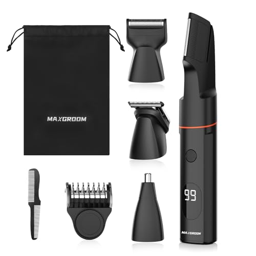 MAXGROOM ボディシェーバー メンズ 4in1 ボディ トリマー 電動シェーバー 電気 体毛シェーバー バリカン VIO ひげそり IPX6防水 乾湿両用 Type-C充電式 LEDディスプレイ すね毛 脇毛 全身対応 小型 男性 女性 ダイヤル式 父の日 プレゼント 誕生日 敬老日 クリスマス 新年 日本語説明書付き