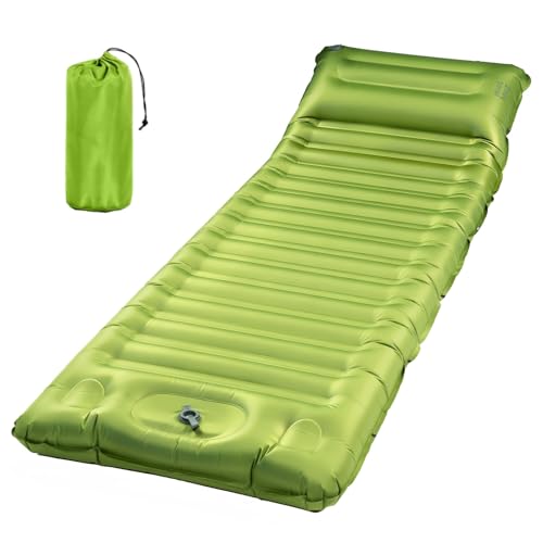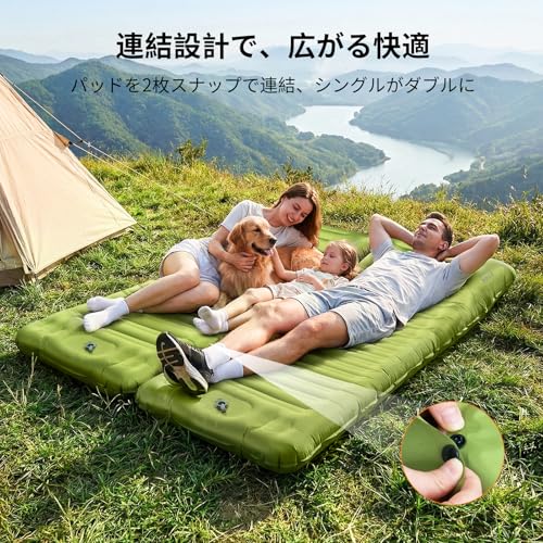 Minthouz エアーマット キャンプ マット アウトドア エアベッド シングル 簡易ベッド 足踏み式 連結可能 枕付き R値4.0 車中泊 キャンプ用品 防災用 寝袋 寝具 キャンプエアーベッド 軽量 防水 人間工学設計 コンパクト 補修パッチ付 収納袋付き