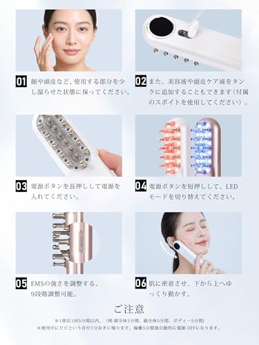 9段階の強さ調整で、敏感肌から本格ケアまでお肌に合わせて使用できます。
