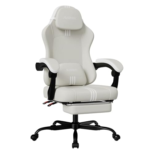 NIONIK ゲーミングチェア ファブリック オットマン付き オフィスチェア デスクチェア 通気性 テレワーク 疲れない 椅子 人間工学設計 連動式アームレスト 145°リクライニング パソコンチェア 幅広座面 座り心地よい 高耐久性 ゲーム用チェア ヘッドレスト&ランバーサポート 簡単組み立て (ベージュ)
