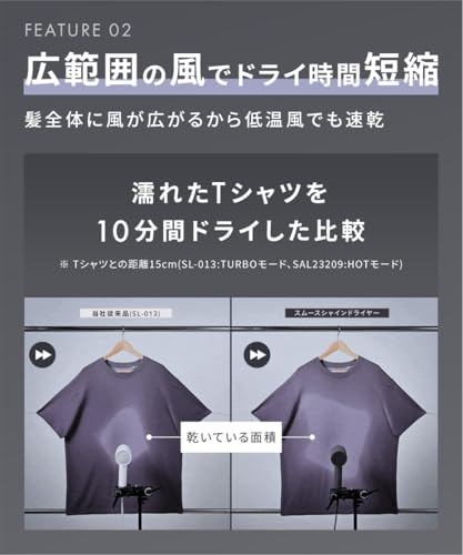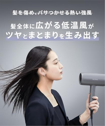 SALONIA スムースシャイン ドライヤーは、大風量2.4㎥/分で低温速乾を実現。